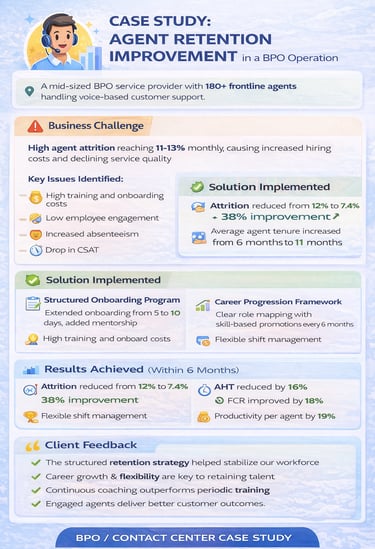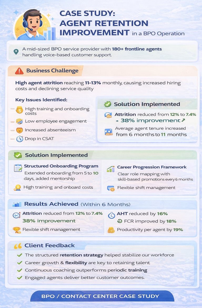 The client was facing high agent attrition, leading to: